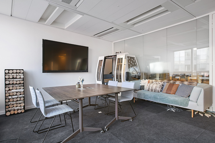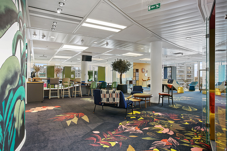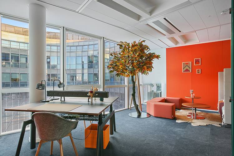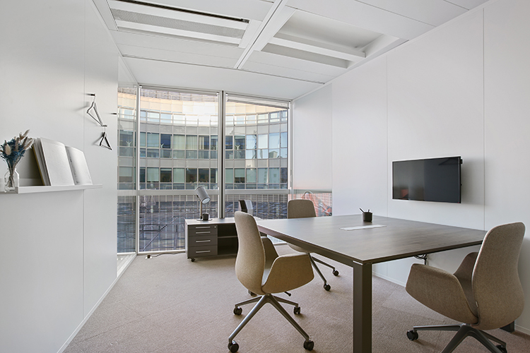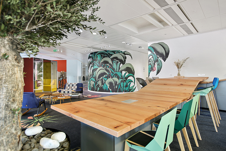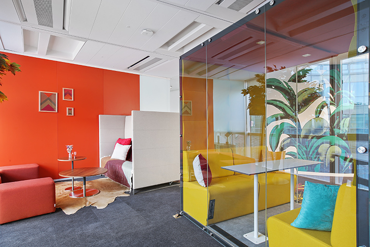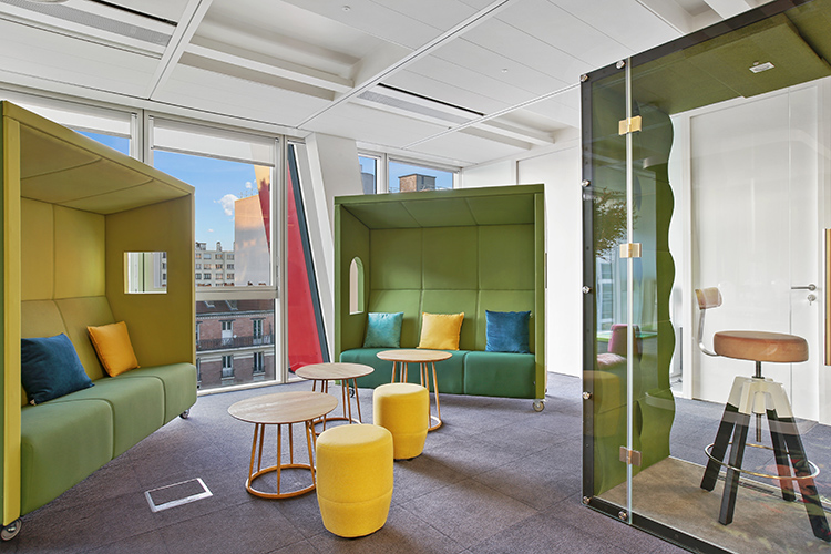 Design et aménagement d'un espace de travail collaboratif, de bureaux, d'un espace d'accueil et d'une cabine acoustique.